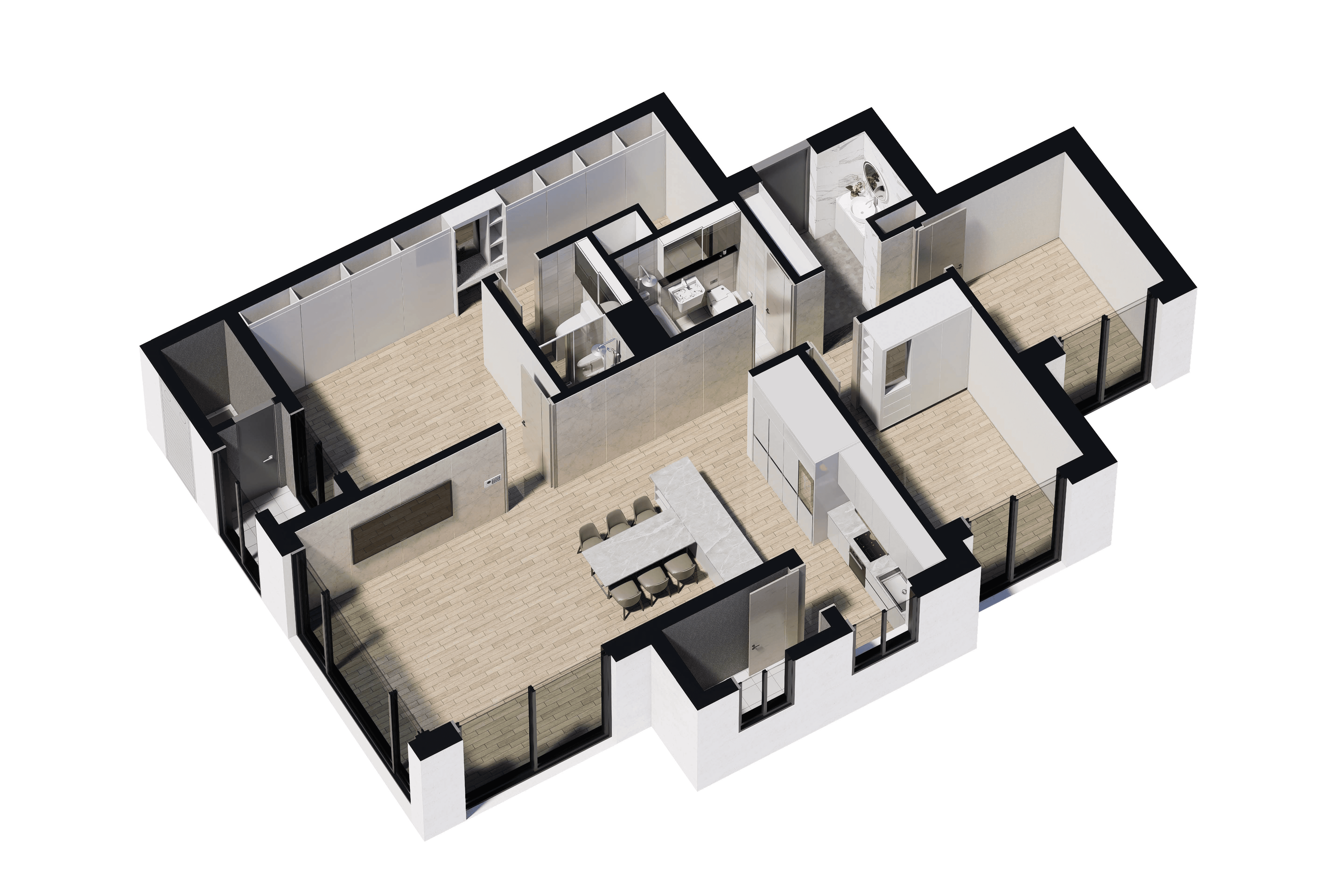 전 세대 남향 위주 배치로 채광은 극대화하고, 넓은 동간 거리로 프라이버시는 철저히 보호합니다.